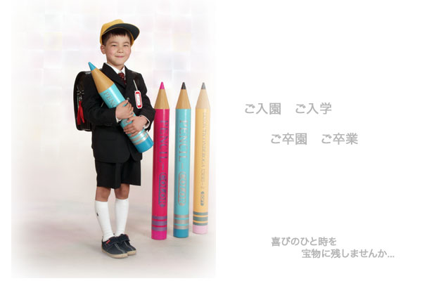 記念すべき入園から卒業式を色々な表情で撮影致します。多ポーズ多カット撮影いたしますので